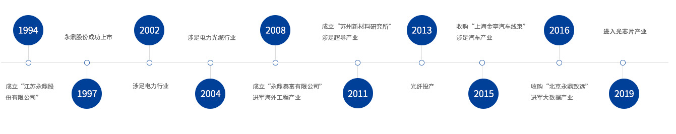 歷經(jīng)二十載的創(chuàng)新與發(fā)展,永鼎股份已從最初的單一通信線纜制造,發(fā)展成為如今涵蓋光纖光纜、電線電纜、特種光電纜、光器件、通信器件及設(shè)備、通信大數(shù)據(jù)及工程服務(wù)、系統(tǒng)集成方案提供等通信全產(chǎn)業(yè)鏈覆蓋的業(yè)界領(lǐng)先企業(yè)之一。