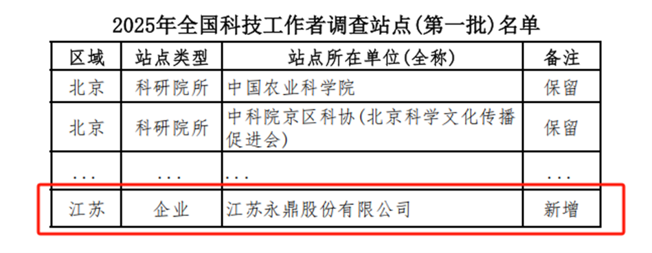 永鼎入選2025年全國科技工作者調(diào)查站點(diǎn)名單